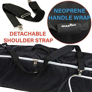 Conveniently transport 2 sets of skis, bindings, and poles in one deluxe travel bag. Your skis are a prized possession, and it should be - you've spent a lot of money on them. That's why when you travel, whether by car or airplane, you need to make sure that it is well protected. Athletico has you covered. Presenting the new WHEELED Athletico Double-Up Padded Ski Travel Bag - designed to keep all your most important ski equipment safe and dry.
