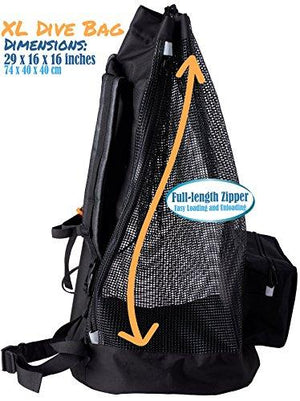 The bag features multiple compartments to allow you to organize your gear all in one place. The outer pocket is designed for regulator or computer storage. A large inner pocket may also be used to store additional gear. The center, mesh storage area features a long vertical zipper to easily access the contents.